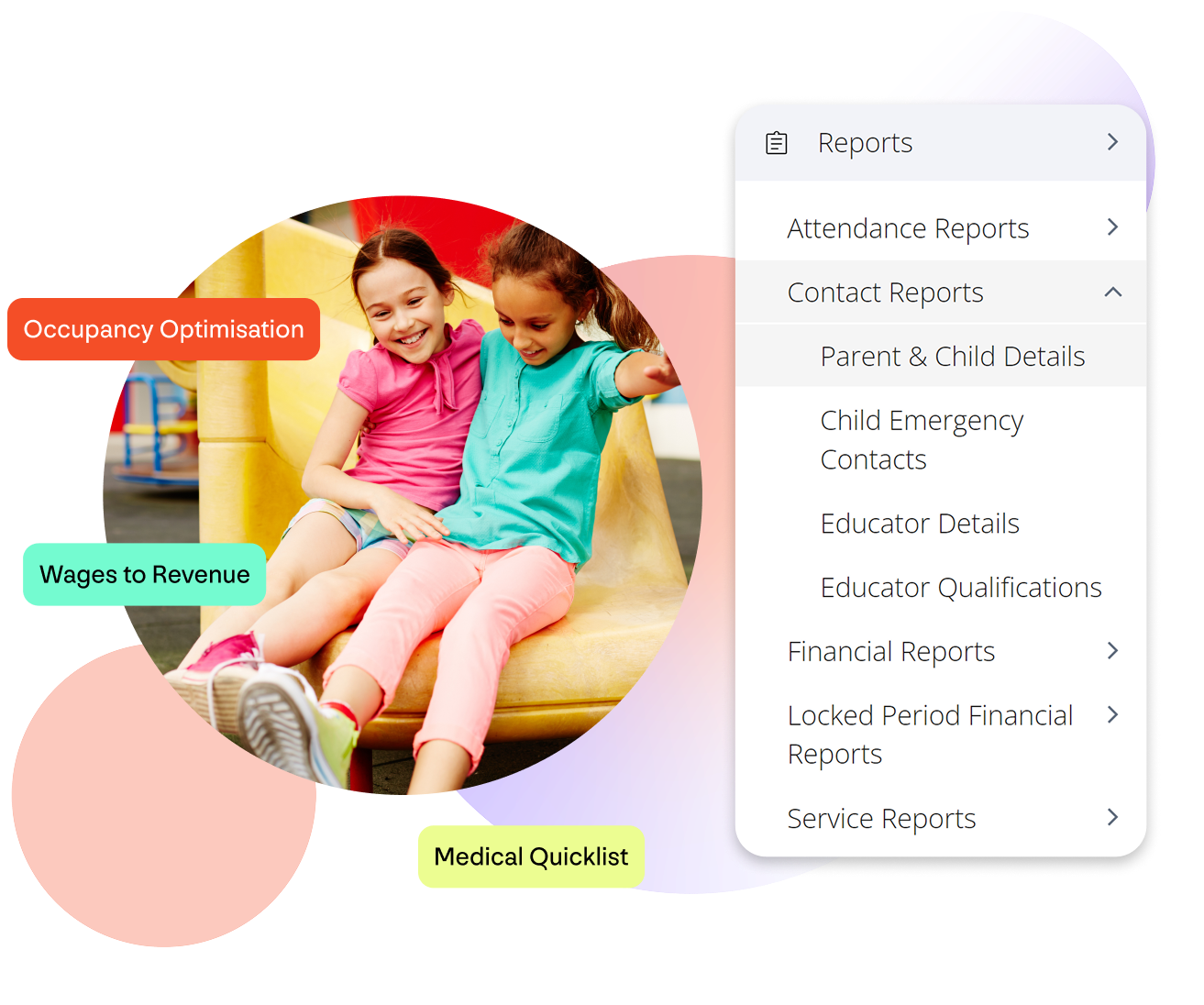 - In addition to attendance and financial reports, you have access to parent/child details reports, emergency contact information and even staff details and birthday lists.